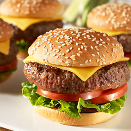 2. Place patties on grid over medium, ash-covered coals. Grill, uncovered, 13-15 min. (over medium heat on preheated gas grill, covered, 13-14 min.) until instant-read thermometer inserted horizontally into center registers 160°F, turning occasionally. About 2 min. before burgers are done, place buns, cut sides down, on grid. Grill until lightly toasted. During last minute of grilling, top each burger with cheese slice. 3. Line bottom of each bun with lettuce leaf; top with tomato slice, burger, and toppings, as desired. Close sandwiches. * Nutrition information is for 95% lean ground beef * Recipe Courtesy of The Beef Checkoff Nutritional information: